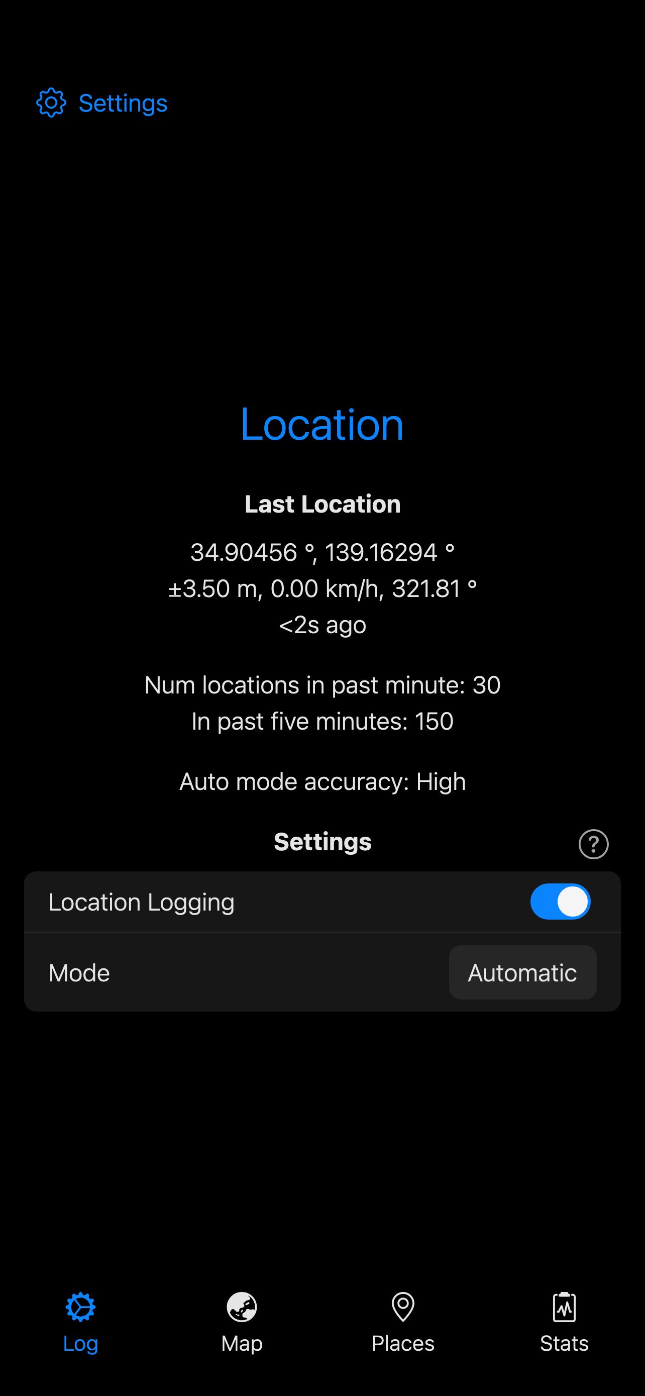 - Log and view location, altitude, speed, time, course, location accuracy, and more.